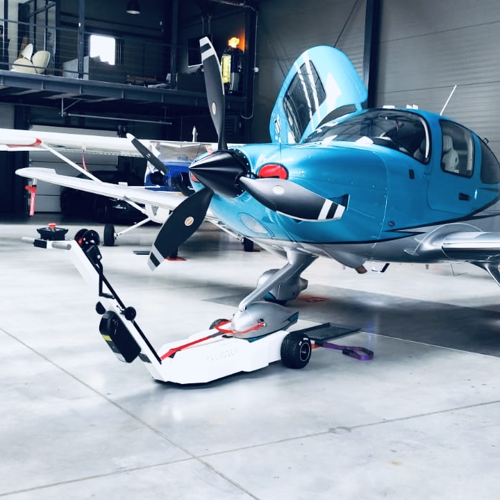 Discovery Aircraft Tug – Powerful 48V electric dolly designed for safe and efficient airplane towing up to 2500 kg. Lightweight fiberglass hull, secure strap system, and intuitive Infinity Tugs control panel ensure easy handling on both grass and asphalt. Optional upgrades include carbon hull, LED bar, Cirrus adapter, and extended battery for maximum performance.